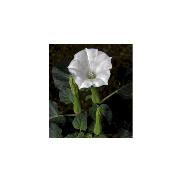 Дурман Индийский (Datura Metel) — однолетнее травянистое растение, с огромными колокольчатыми цветами, которые источают незабываемый аромат. Цветы принадлежат к семейству Пасленовых. Род дурмана насчитывает 15 видов растения. Дурман индийский наиболее распространен в Индии, где считается священным растением, и называют «цветком Шивы».